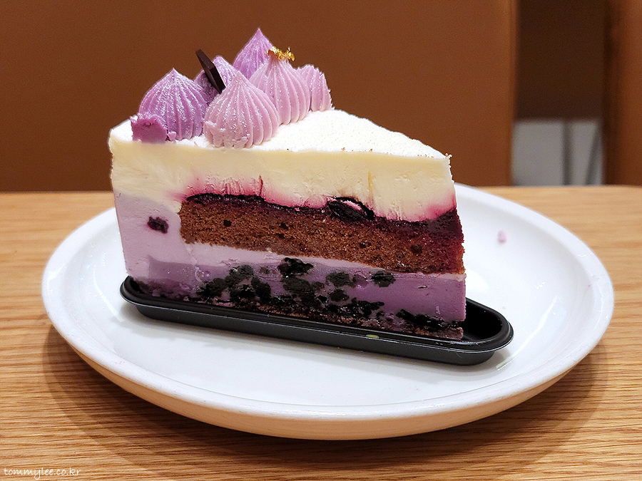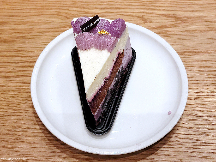 트리플베리 케이크 하면 전 방탄과 얽힌(?) 에피소드가 생각이 나는데요.. 작년에 방탄소년단이 그래미 어워드 노미네이트 되었다며 기쁨의 자축 라이브를 켰는데.. 그때 브이라이브에서 투썸 트리플베리 치즈무스가 나왔더랬죠.. 보라색 케이크 너무 예쁘다고 RM이 극찬.. 근데 지민이가 샴페인을 따다가 케이크 위에 제대로 쏟아서 웃지 못할 대참사가 났던 걸로.. 그게 너무 웃겨서 아직도 기억에 남아요.. ㅋㅋㅋ..