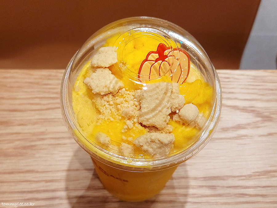 투썸플레이스에서 할로윈 시즌 음료로 나온 딜라이트 펌킨 프라페.. 소프트 아이스크림 마감으로 로얄 밀크티 쉐이크를 주문할 수가 없어서 어쩔 수 없이 주문..