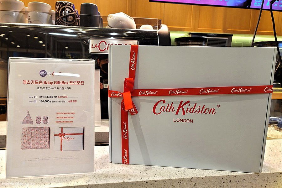 캐드키드슨 베이비 기프트박스 프로모션.. 캐드키드슨 애쉬본 딧시 손싸개, 모자, 담요 3종으로 구성된 선물세트.. 제조음료 1잔과 함께 구매 시 53,000원.. 커피빈카드 13만원 충전시 무료라고 합니다.. 필요없는데 받고 싶다.. ㅡㅡ;;..