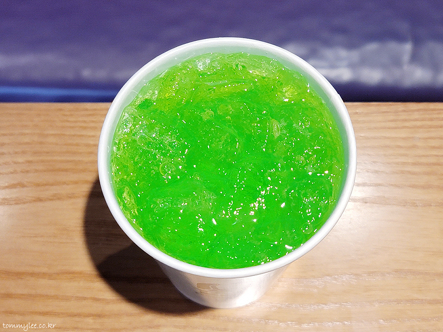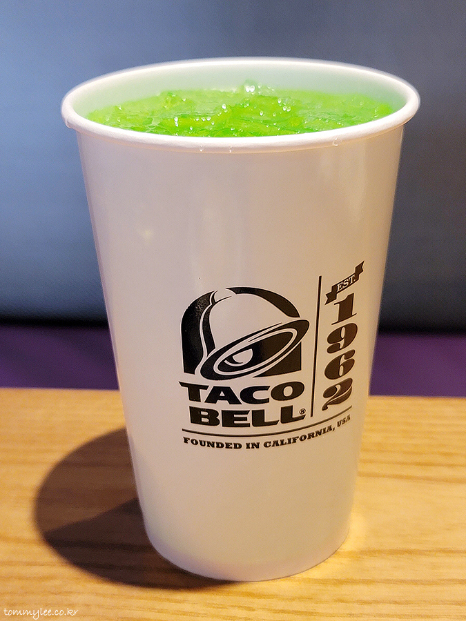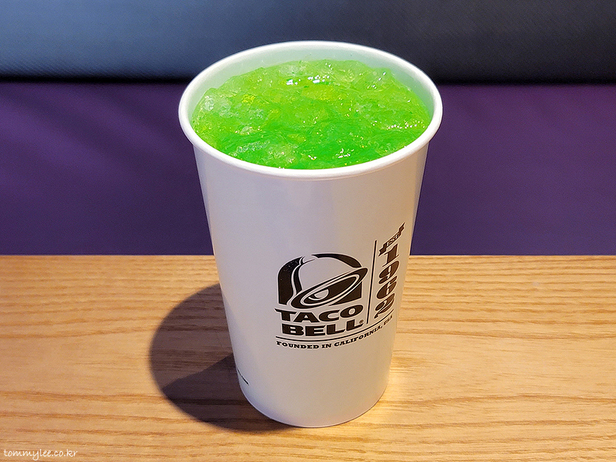 메론소다 아님 마운틴듀.. 타코벨은 컵 주면 알아서 소다머신에서 얼음이랑 음료랑 채워서 가져가는 방식인데.. 오랜만에 마운틴듀를 콜라봤네요..