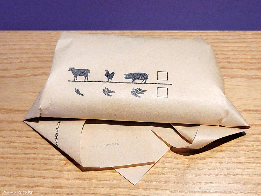 오픈해보면 이런 느낌.. 사진상으로 보면 기본 소프트 타코로 보이실 수도 있으나.. 근본부터 다른 완전히 새로운 신메뉴랍니다..