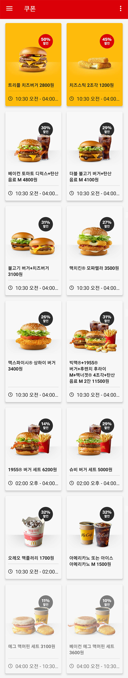 맥도날드 앱쿠폰은 트리플치즈버거, 치즈스틱2조각 등등 많이 준비되어 있네요.. 그리고 맥도날드 멤버십 프로모션도 있습니다..