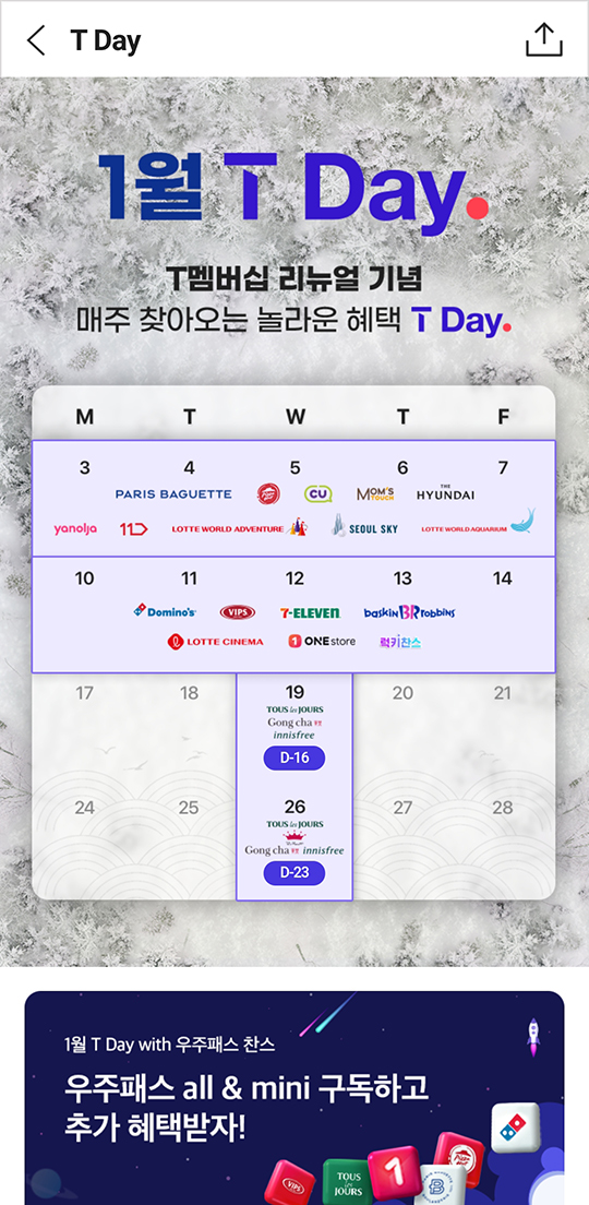 1월 T멤버십 T데이 첫주 행사에 맘스터치가 함께 하는데요..
