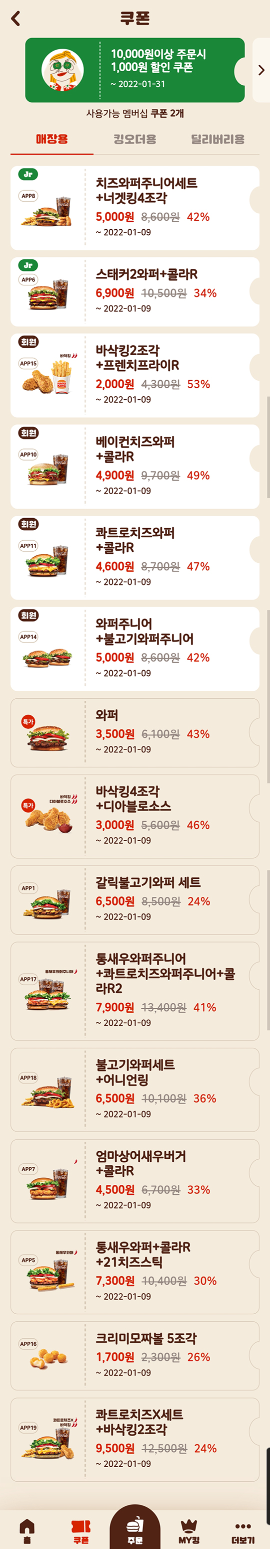 OK캐쉬백 버거킹 쿠폰은 뭐 늘 있던 그것들이 2022년에도 그대로 이어져 오는 느낌.. ㅋㅋㅋ..