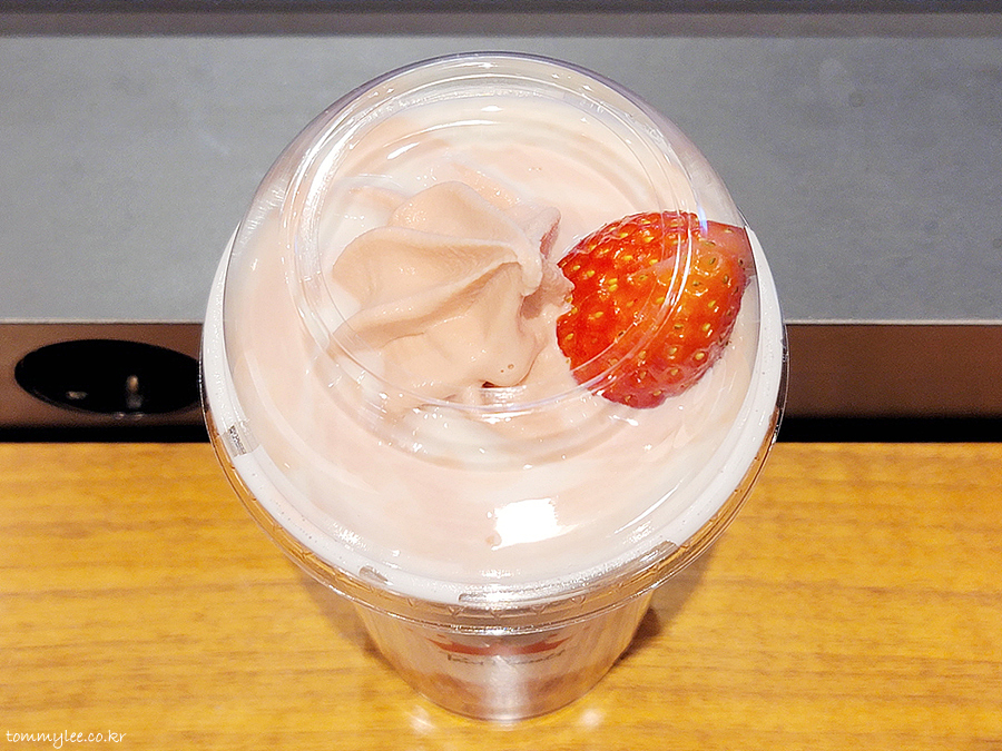 매년 딸기시즌이면 나오는 스트로베리 라테 올해도 변함없는 맛이네요.. 플로트용 스푼 스트로가 나오는 게 아니라 딸기 아이스크림도 빨대로 빨아들여야 해서 살짝 먹기 불편했던 듯.. 담엔 스푼 달라고 해야 할 듯..