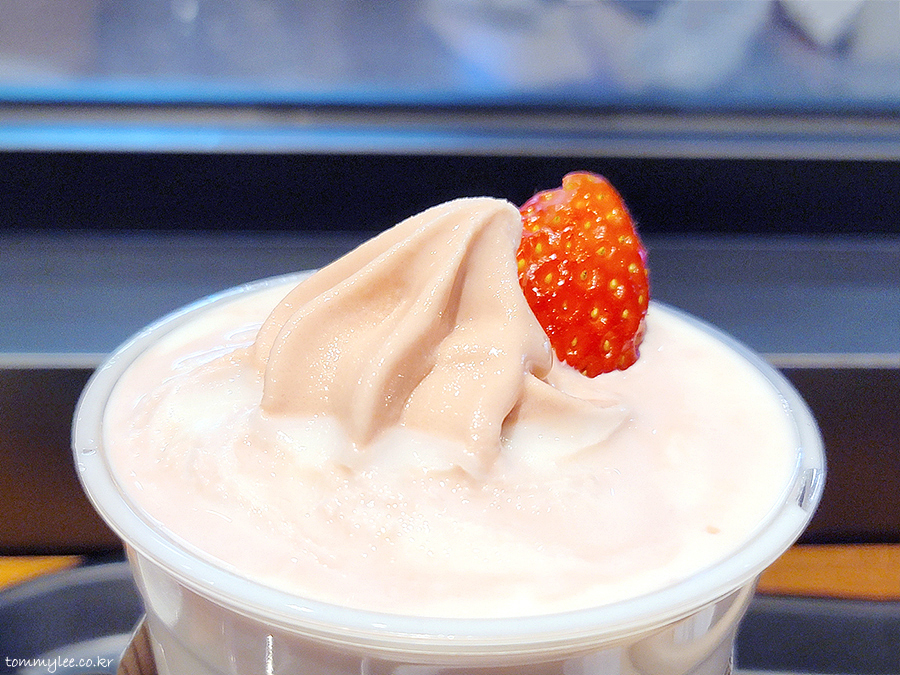 진짜 딸기가 들어간 딸기 우유에 딸기 소프트 아이스크림에 딸기 장식까지 올렸는데 이건 맛이 없을 수가 없음.. ㅋㅋㅋ..