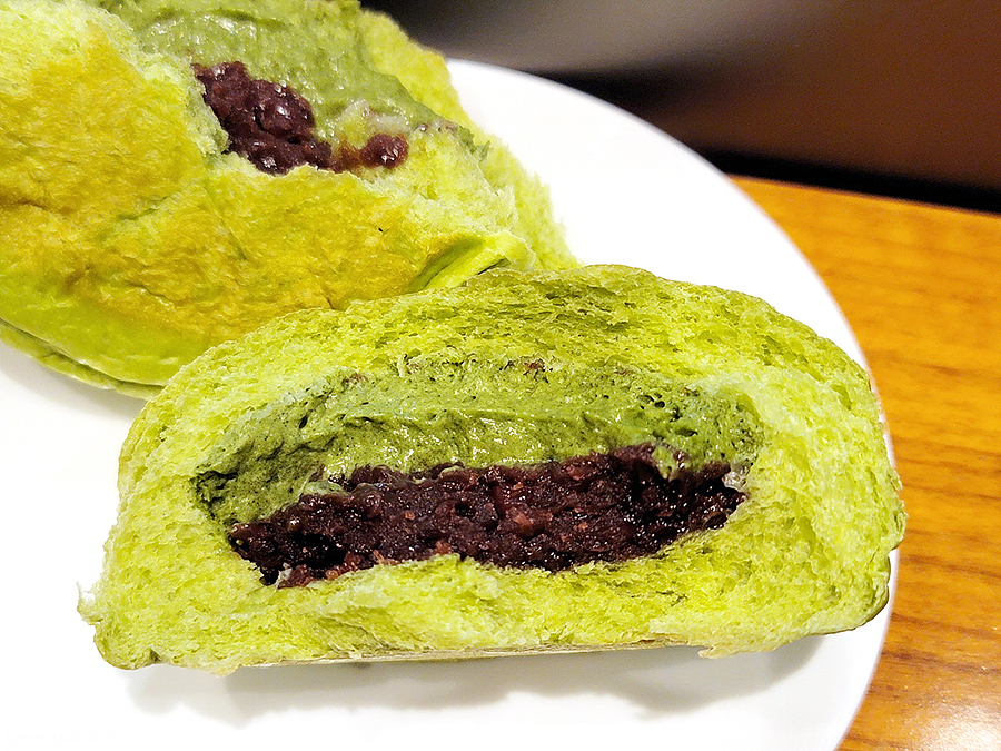 팥빵 안쪽은 이런 느낌.. 녹차생지에 녹차크림 그리고 단팥필링까지 착실하게..