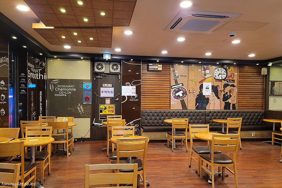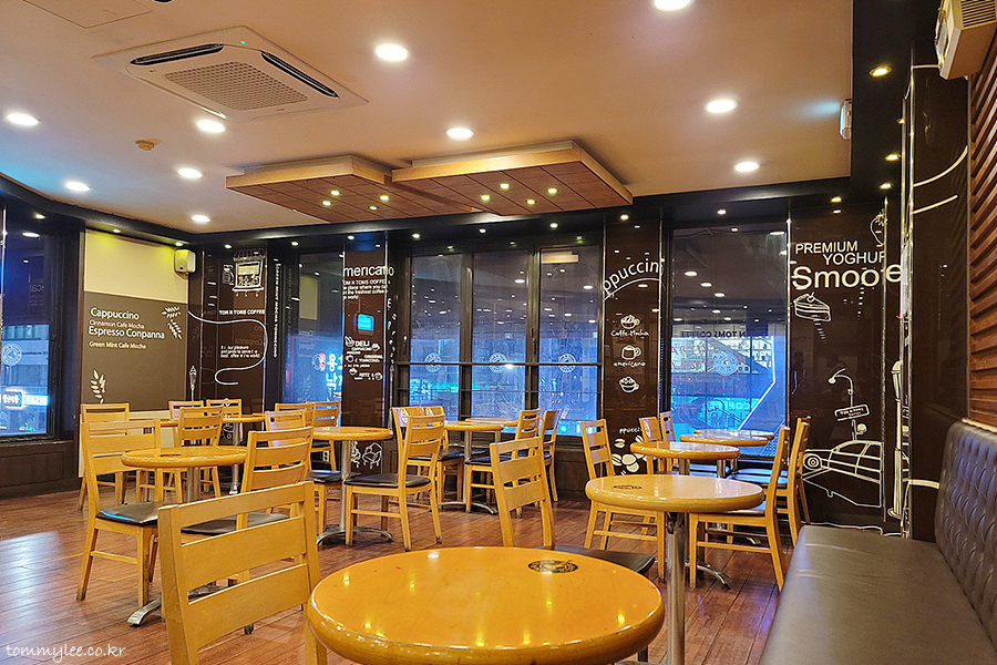 깔끔한 탐앤탐스 홍대파크점 매장의 풍경입니다.. 직원분 엄청 친절하시네요..