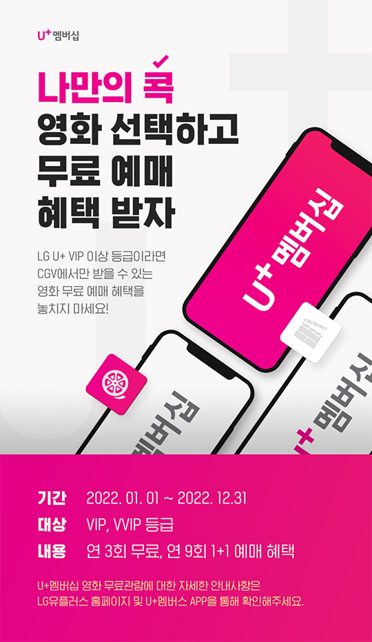 LG U+ 멤버십 VIP 혜택 중에서 가장 쏠쏠했던 영화콕 CGV 영화예매 혜택이 연 12회 무료에서 연 3회 무료, 연 9회 1+1으로 혜택이 대폭 축소되어.. 영화콕은 사실상 유명무실해졌다고 봐야겠네요.. 저는 라이프콕으로 변경해 매달 폴바셋에서 무료 커피를 마시기로 하고 나만의콕 혜택 변경을 했네요.. 기존에 영화콕 혜택 받던 분들은 라이프콕으로 변경해 폴바셋 가시는 게 현재는 가장 현명한 선택이고요.. 폴바셋 매장이 없는 지역에 계시다면 영화콕을 유지하시거나 구독콕으로 갈아타는 방법을 택하시면 되겠습니다..