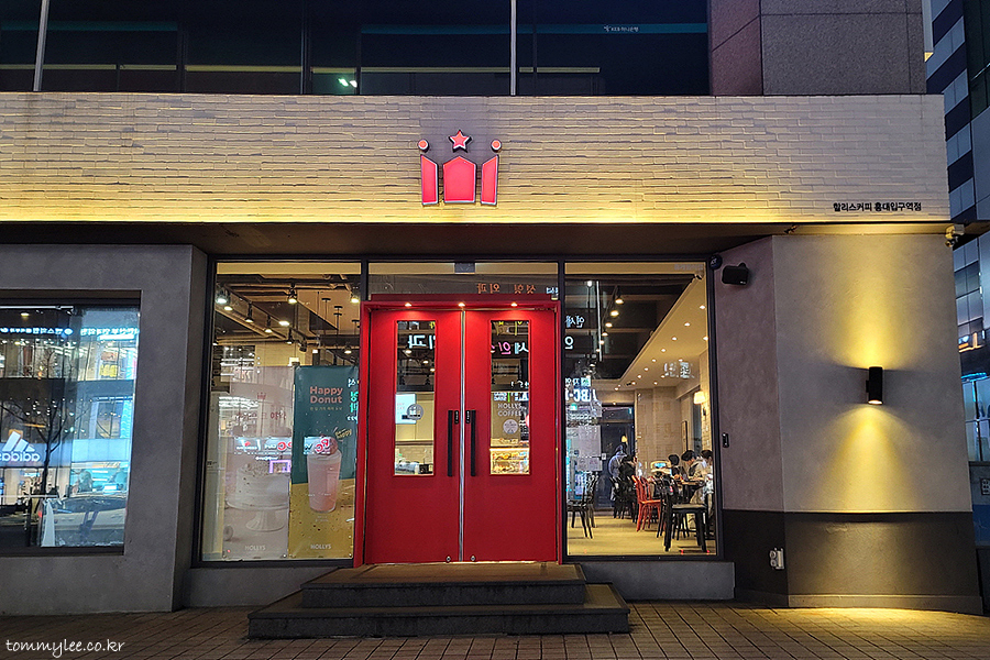 HOLLYS COFFEE.. HONGIK UNIVERSITY STATION.. 할리스커피 홍대역점.. 홍대입구역 1번출구 바로 앞이란 좋은 위치의 매장..