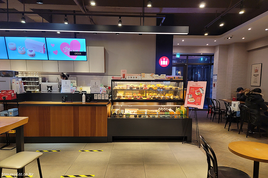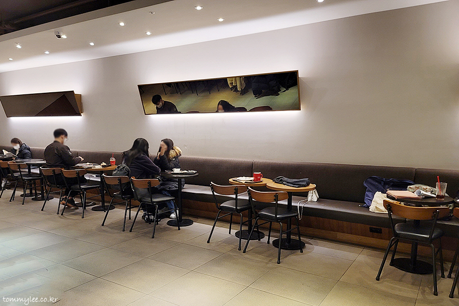 매장 밖에선 1층만 보이지만 지하에 정말 넉넉한 공간이 기다리고 있다는고.. 여기가 의외로 200석 규모의 대형점이에요.. 물론 지금은 테이블을 많이 치웠지만..