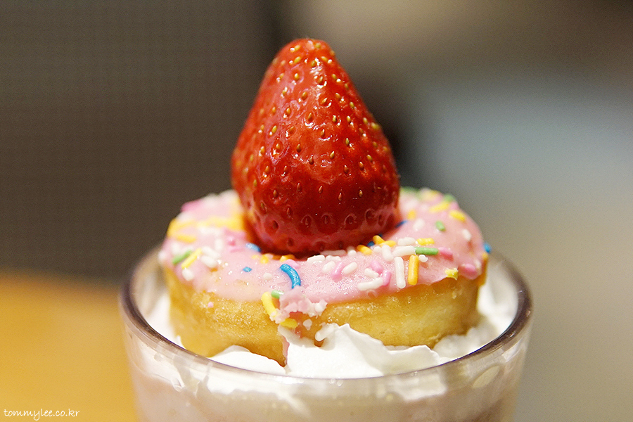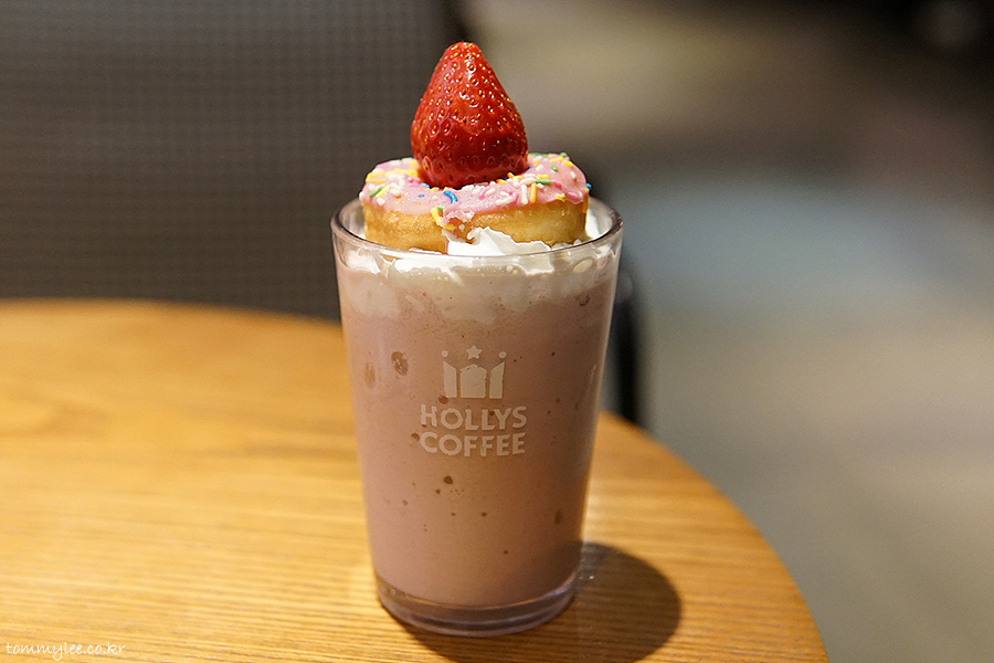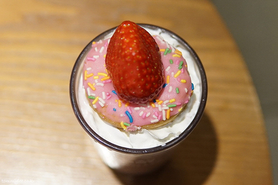 도넛과 딸기 장식도 좋은데 음료도 기존 딸기 할리치노와는 다른 밀크셰이크풍의 할리치노입니다.. 어디서 마셔본 듯한 평범하면서도 익숙한 맛.. 하지만 맛있는 딸기 밀크셰이크 맛..