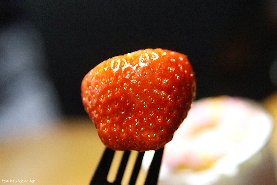 원포인트 장식용 딸기로는 적당하지 않은 육중한 딸기.. 하지만 뭐 작고 못생긴 것보다는 나으니까.. ㅡㅡ;;..