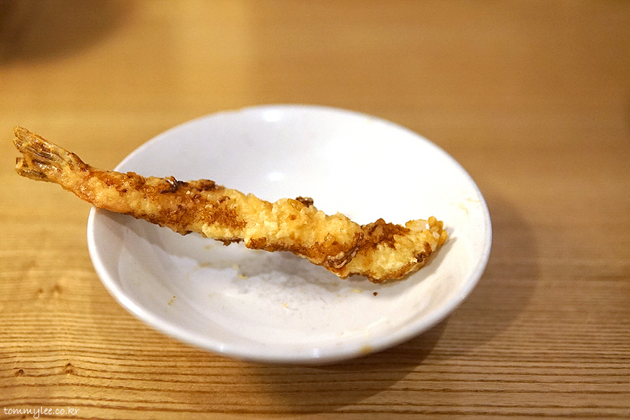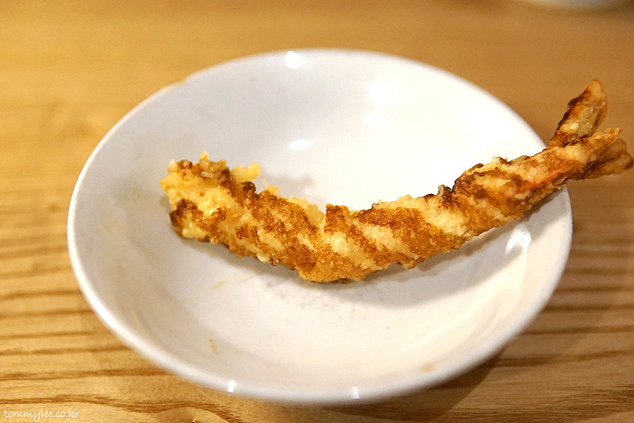 새우텐동의 대미는 새우튀김이 되어야 한다는 생각에 남겨뒀던 한 마리 먹는 걸로 마무리..