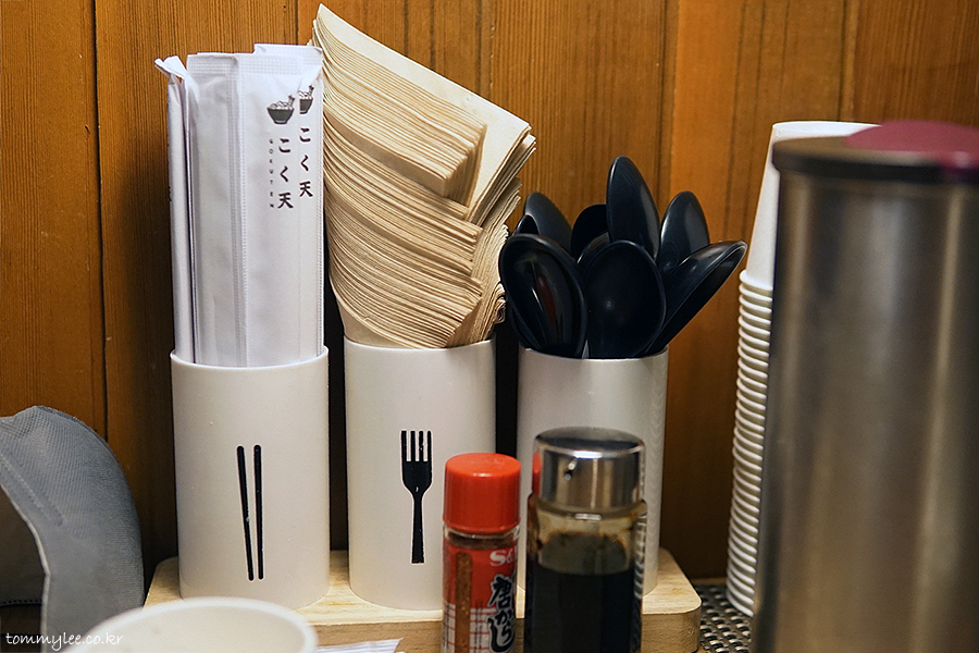 마지막으로 지인분께서 강하게 불만을 가지셨던 점이.. 고쿠텐은 오픈키친인데 주방과 홀의 구분이 없는 한 덩어리인데 환기가 전혀 안되어서 튀김유 특유의 기름 냄새와 열기로 매장 안이 가득했다는 것.. 텐동 먹는 짧은 시간 동안 기름내가 온몸에 배었다면서.. ㅠ.ㅠ.. 어쨌거나 기다림을 감수하면서 먹어야 할 맛도 아니고 멀리서 일부러 찾아와서 먹을만한 맛은 더더욱 아닌 걸로 결론을 내리게 되어 안타깝네요..