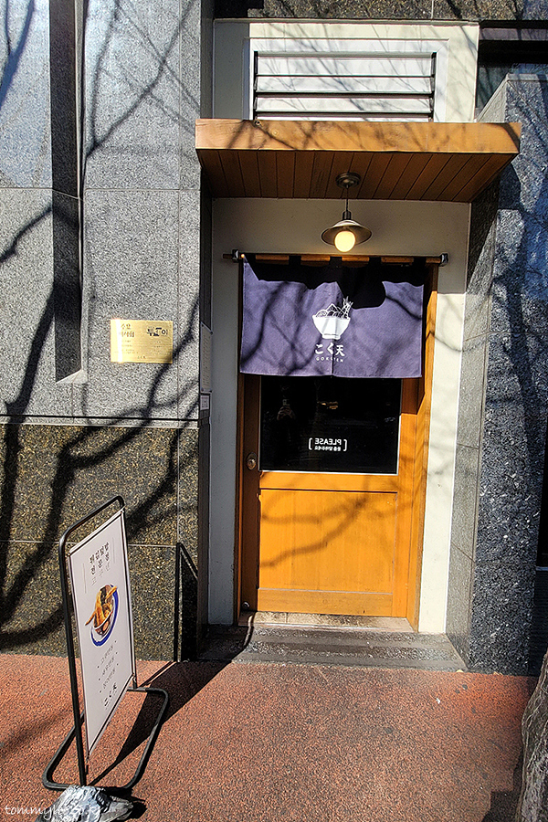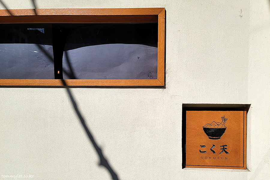 GOKUTEN SEOHYUN.. 고쿠텐 서현점.. 카카오맵을 보면서 분당구청에서 걸어갔는데 간판이 작아서 발견하지 못하고 그냥 지나쳐 공차까지 쭉 가버린.. 여긴데 왜 없지 하고 있는데 안들어오고 뭐하냐고 전화 옴.. ㅋㅋㅋ.. 외관은 일단 많이 일본스럽습니다.. こく天(코쿠텐)이라고 일본어로 쓰여있는데 영어로는 KOKUTEN이 아닌 GOKUTEN이네요.. こく는 감칠맛의 코쿠인듯하고 天은 텐동의 텐일 듯싶습니다..