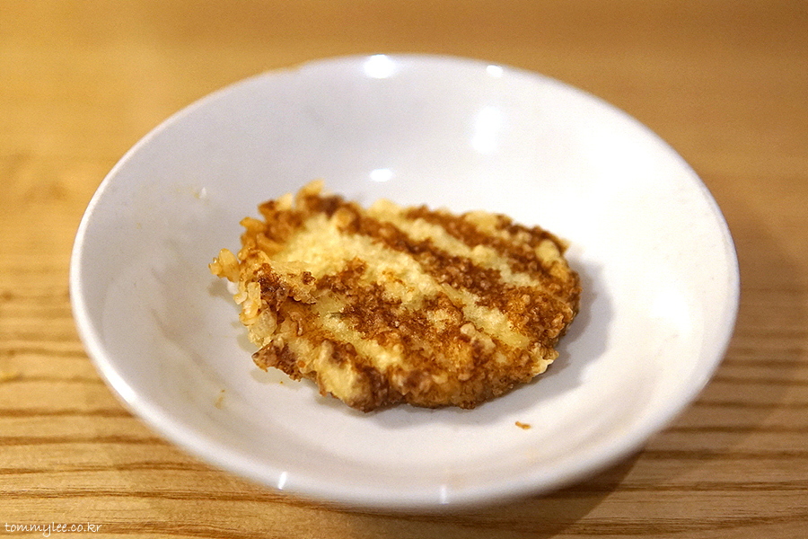 튀김 아래 흰쌀밥이 깔려 있는데.. 전혀 보이지 않을 정도로 튀김에 비해 극단적으로 밥양이 적네요.. 튀김이랑 밥의 밸런스는 일단 8:2 정도로 밥이 차지하는 비중이 미미했단..