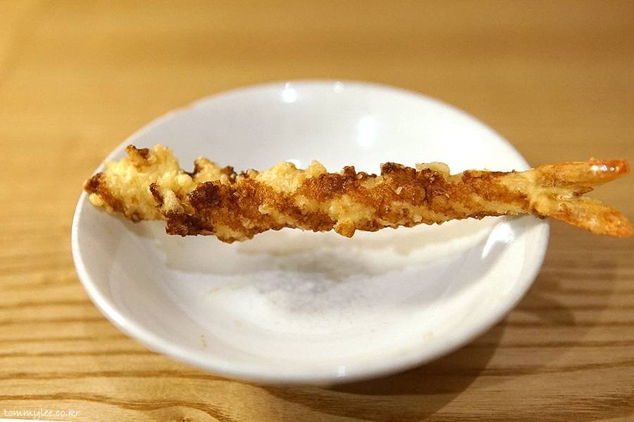 새우텐동의 대미는 새우튀김이 되어야 한다는 생각에 남겨뒀던 한 마리 먹는 걸로 마무리..