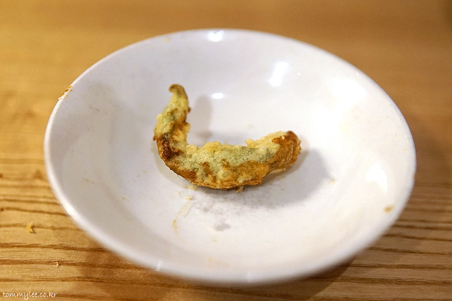 꽈리고추튀김.. 일본은 이거보다는 인겐텐이라고 껍질콩튀김을 주로 쓰는데 여긴 고추튀김을 내놓네요.. 근데 꽈리고추가 더 맛있긴 함..