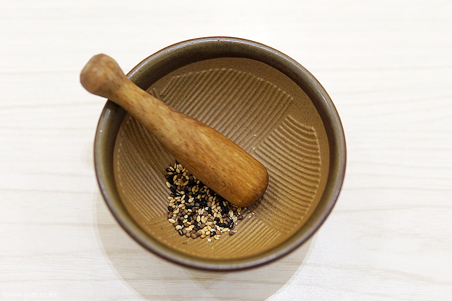 깨절구.. 톤카츠 나오기 전에 깨를 갈아주고요..
