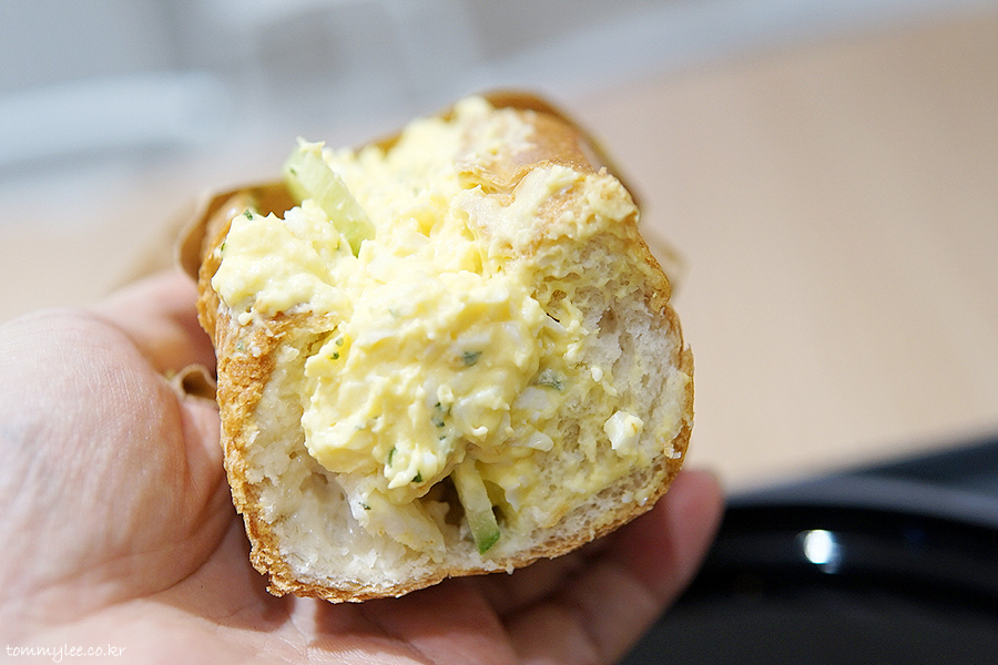 엔제리너스 반미의 혜자스러움을 느낄 수 있는 측면 샷.. 진짜 엄청난 양의 계란샐러드가 들어 있어요..