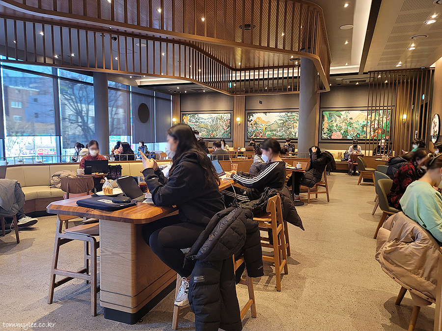 2층으로 올라와 보니 어머나~ 이런 광경이.. 1분 거리에 있는 인근 할리스 북가좌점에서는 전혀 느껴보지 못했던 면학 열기에 깜놀.. 뭐야 이게.. 자리가 없네.. ㅋㅋㅋ.. 스타벅스에서 공부를 하면 공부가 더 잘되나요.. 의외로 의식이 높은 분들이 많은 동네였음..