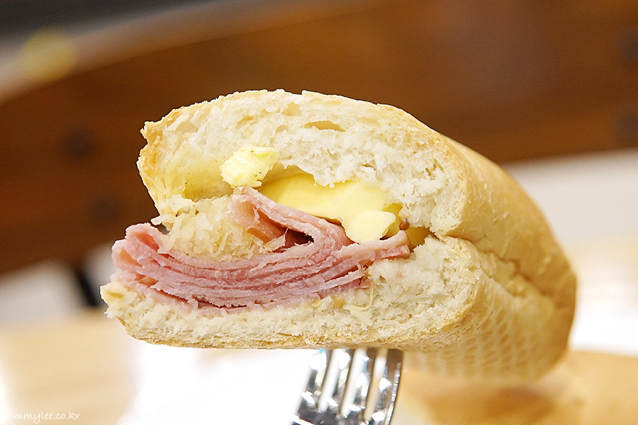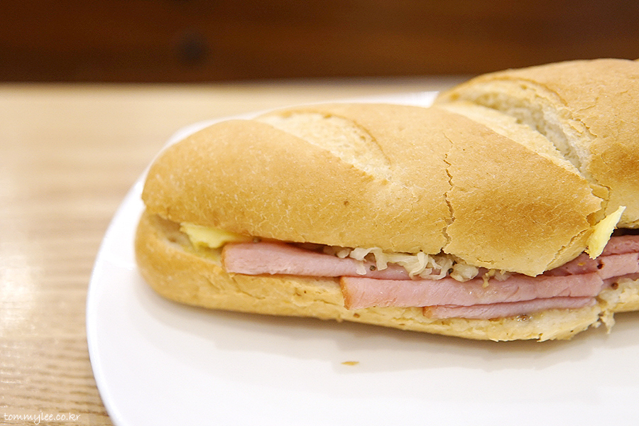 트러플오일을 살짝 바른 소프트 바게트 사이에 버터와 잠봉햄 그리고 사우어크라우트..