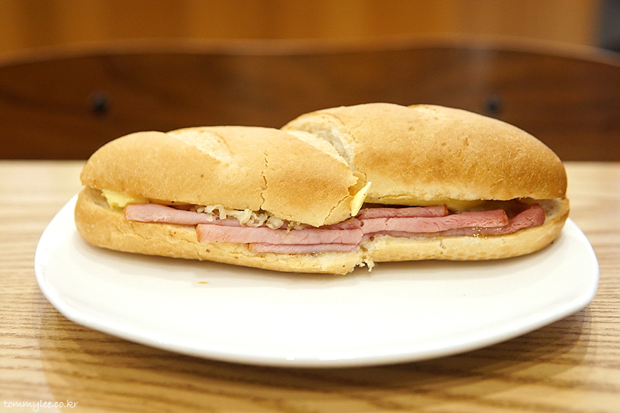 트러플오일을 살짝 바른 소프트 바게트 사이에 버터와 잠봉햄 그리고 사우어크라우트..