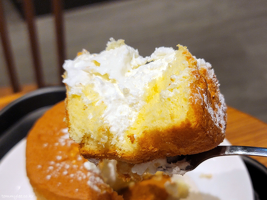 라운드형 카스텔라 안에 생크림이 든 메뉴입니다.. 웬만하면 주문을 안 하는 메뉴인데 선택권의 부재로 진짜 오랜만에 먹어보게 되네요..