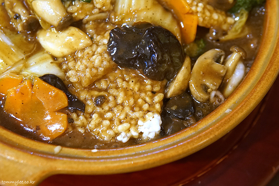 새우, 가리비, 해삼, 쭈꾸미, 오징어가 들어간 누룽지탕.. 버섯도 4종이 들어가서 매우 버라이어티한 맛을 즐길 수 있는 게 여기 누룽지탕의 특징..