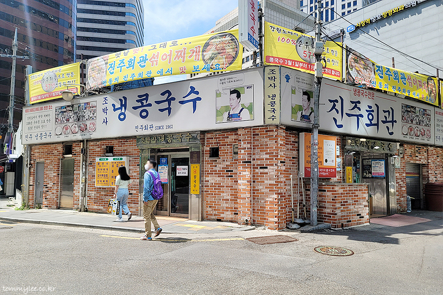 JINJU HOIGWAN.. 냉콩국수전문 서소문 맛집 진주회관.. 맛집다운 외관이죠??.. 뒷배경으로 삼성본관, 부영태평빌딩, 신한은행본점의 랜드마크 빌딩 삼총사가 있는 위치.. ㅋㅋㅋ..