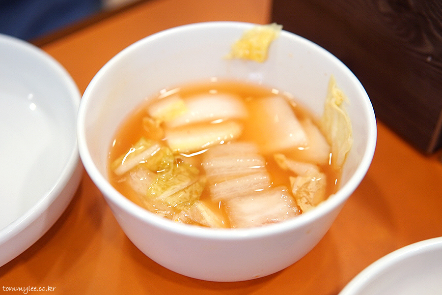 콩국수에는 겉절이 김치가 함께 제공.. 뉴슈가 듬뿍의 달다르한 김치지만 청량감이 있어서 나쁘진 않아요.. 김치가 리필할 만큼 맛있진 않음..