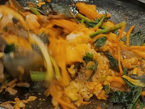 찍는 김에 김치볶음밥 움짤까지 도전.. 흰밥이 보이지 않을 때까지 기름에 달달 볶아볶아..