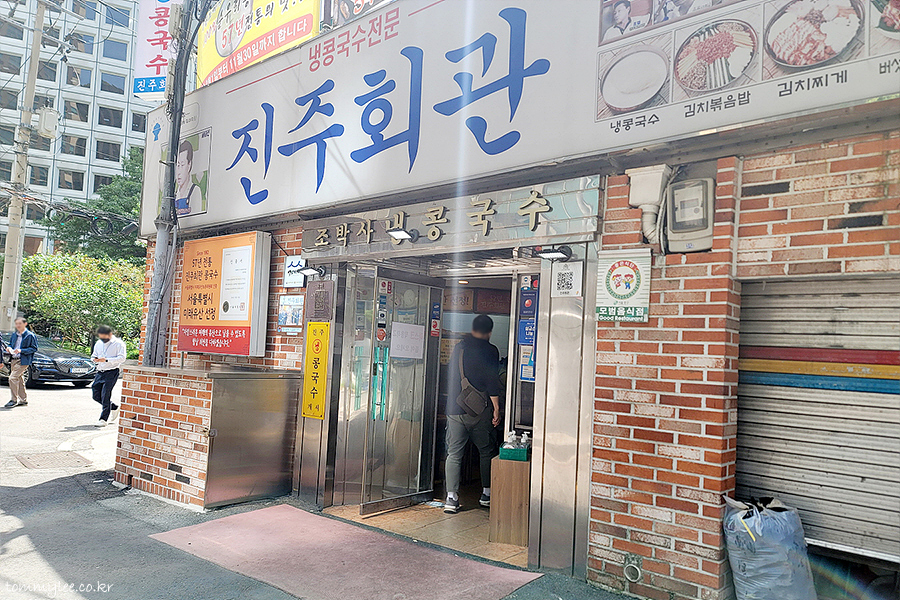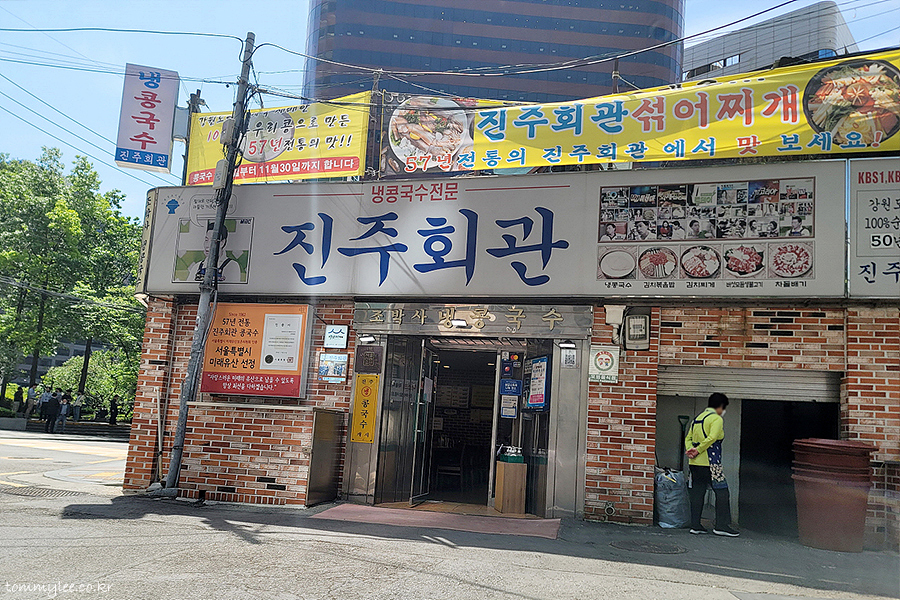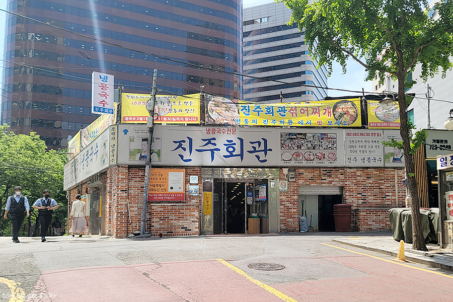 JINJU HOIGWAN.. 냉콩국수전문 서소문 맛집 진주회관.. 맛집다운 외관이죠??.. 뒷배경으로 삼성본관, 부영태평빌딩, 신한은행본점의 랜드마크 빌딩 삼총사가 있는 위치.. ㅋㅋㅋ..