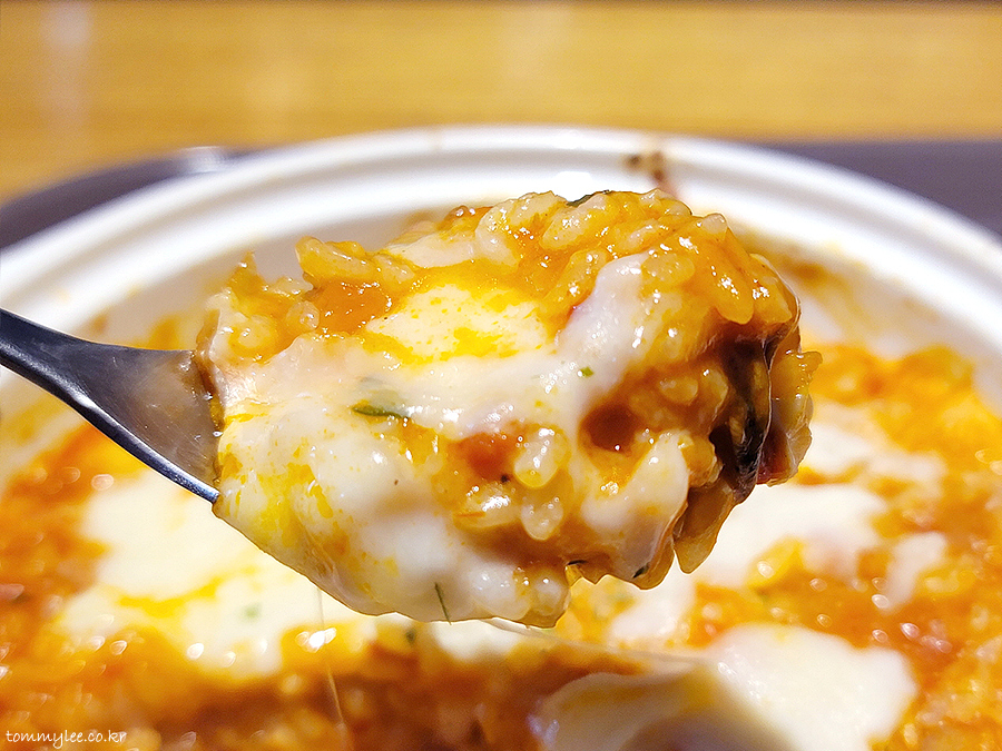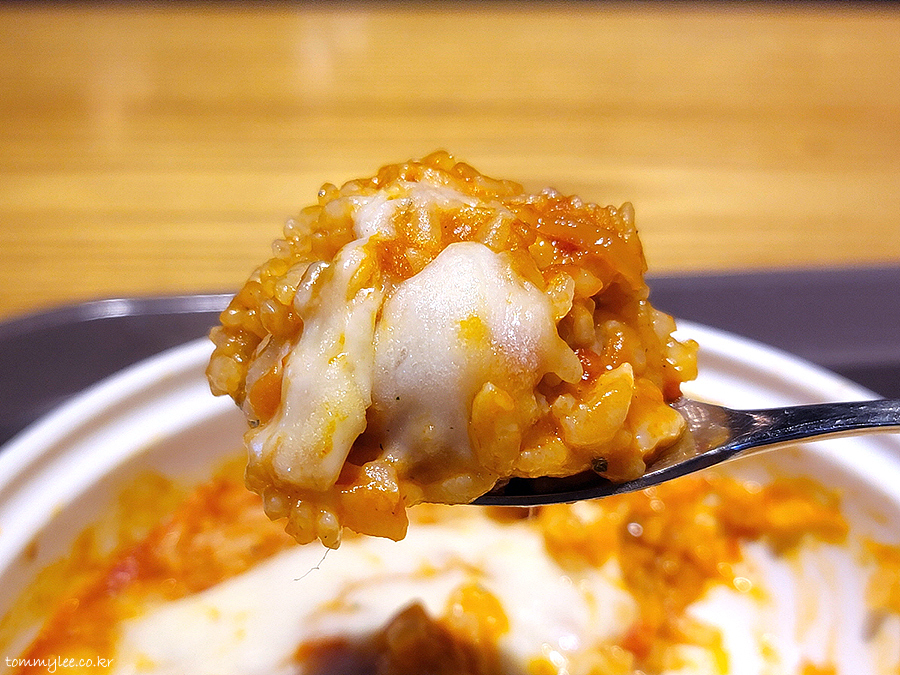 스푼으로 퍼올리면 뭐 요런 느낌이 되겠네요.. 제 입맛에는 소스가 살짝 맵긴 한데 나름 먹을만 해요..