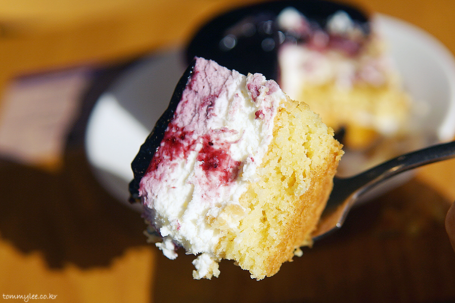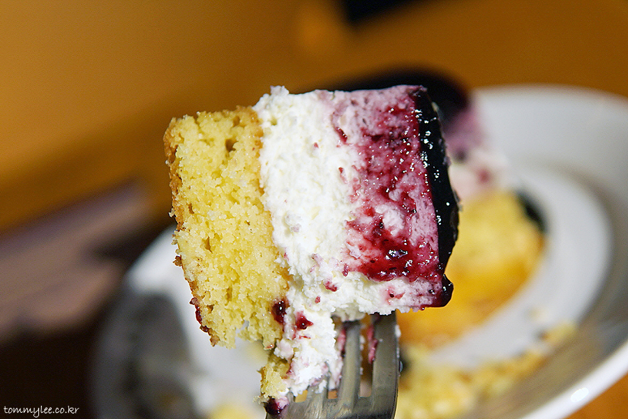 치즈케익 딱 먹으려고 하는데 등 뒤에서 강력한 태양광이 테이블을 덮쳐서 깜짝 놀랐네요.. 블루베리 치즈케이크 눈이 부시다.. ㄷㄷㄷ.. 여름이긴 여름이네요.. 저녁인데도 이렇게 빛이 강렬하다니..
