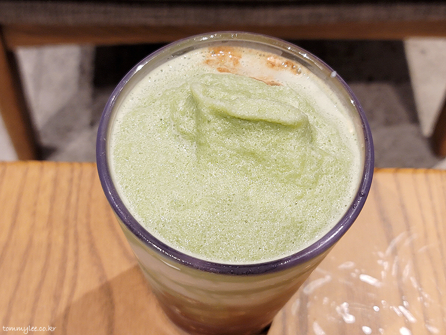 잘 어울리지 않을 것 같은 말차와 커피를 어떻게 합쳐냈을지 궁금했던 음료.. 말차 프라푸치노에 콜드브루 모카소스 조합이라고 합니다..