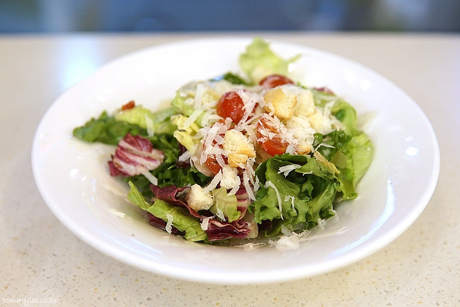 샐러드믹스에 크루통과 그라나파다노 치즈를 토핑 한 샐러드예요.. 부담 없이 주문할 수 있는 저렴한 가격 3천원..
