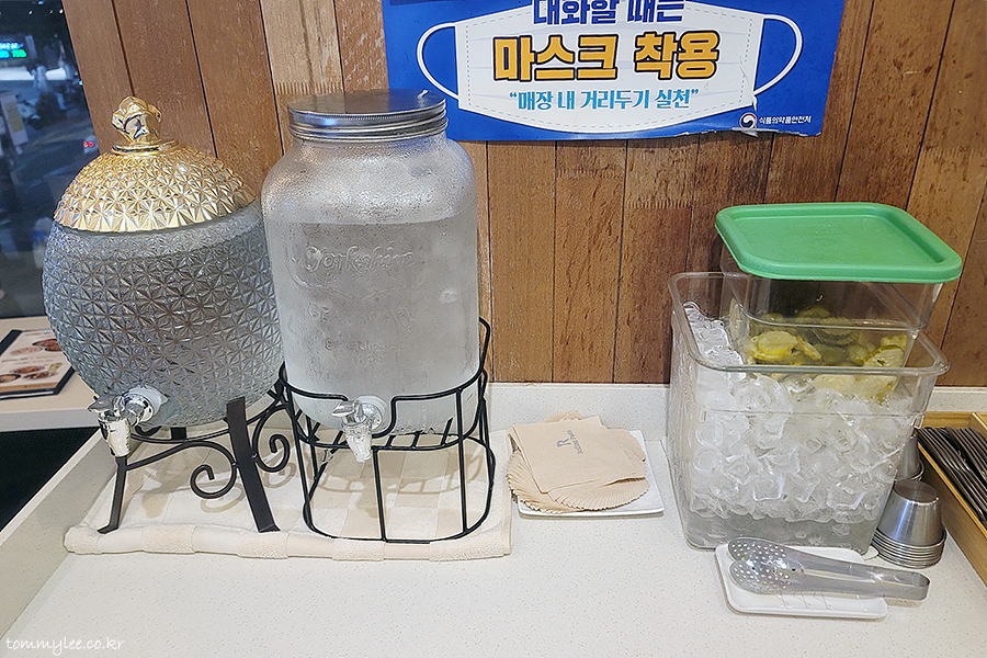 롤링파스타는 테이블세팅이 손님몫입니다.. 물, 피클, 스푼, 포크, 앞접시 등 알아서 가져 오셔야 한답니다..
