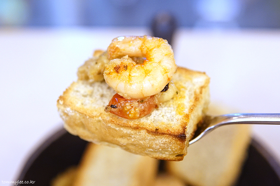 포카치아는 바삭하니 먹을만하네요.. 감바스 오일을 쳐발쳐발해 냠냠..