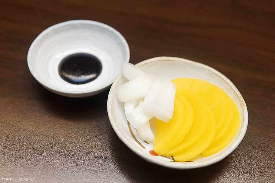 노란 단무지, 양파와 춘장..