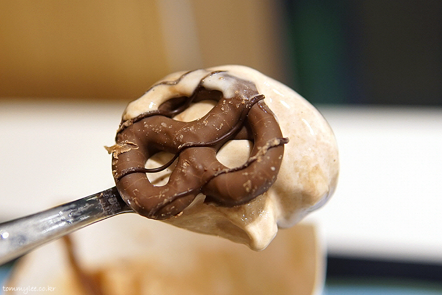한 스푼 퍼올리면 이런 느낌.. 아이스크림이 많이 녹아서 아쉽네요.. ㅠ.ㅠ..