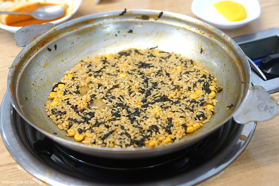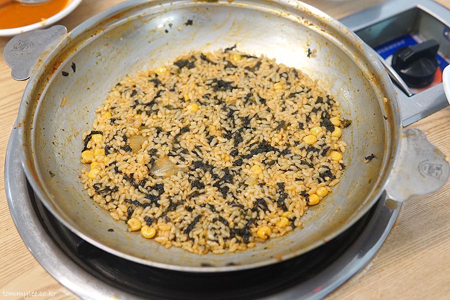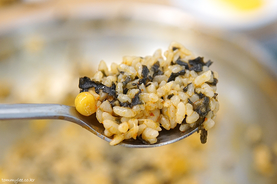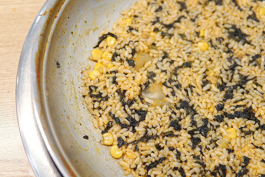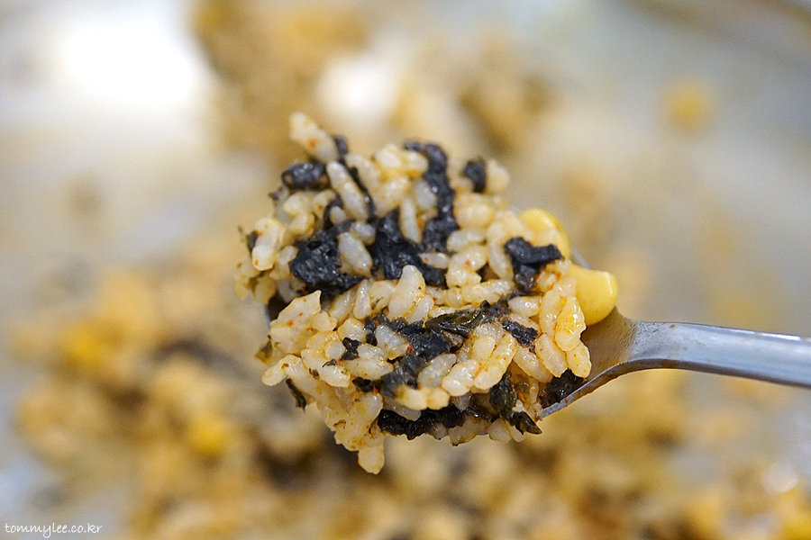 떡볶이 국물에 공깃밥을 넣고 김과 스위트콘을 추가해 달달.. 참기름 향 솔솔..
