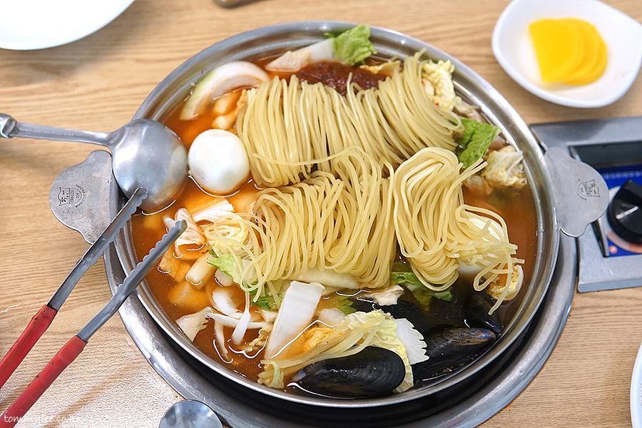 해물로는 홍합과 오징어가 들어가는데 양은 미미.. 공통 재료인 떡, 오뎅, 배추, 양파는 많이 들어가요..