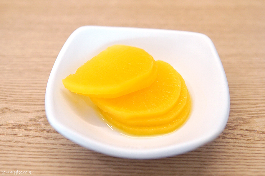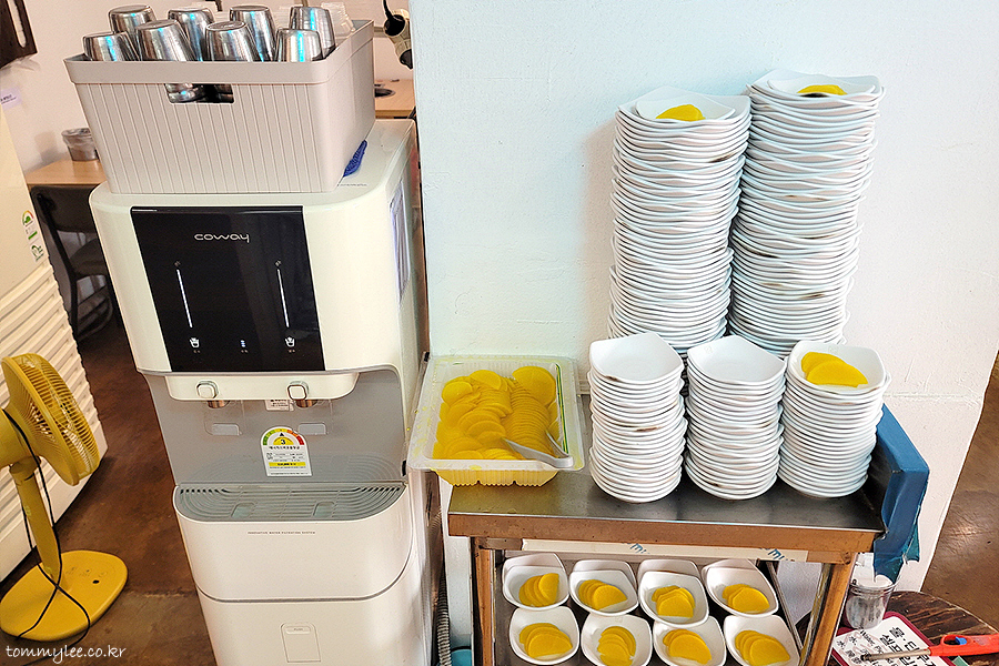 물과 단무지는 셀프바에서 직접 가져오는 방식..