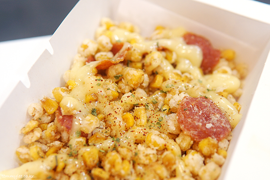 이것은 진짜 단짠의 정석.. 단짠단짠한 크리스피한 튀김옷에 옥수수알은 톡톡 터지고.. 생각보다 더 맛있는 기분.. 옥수수가 진짜 한알한알 따로 떨어져서 포크로 먹기는 조금 불편하긴 하네요.. 스푼 주면 좋을 텐데..