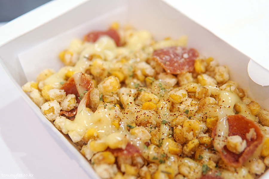 옥수수를 뭉쳐서 튀겨낸 게 아니라 알알이 따로 노는 진짜 옥수수튀김이었네요.. 이렇게 나올 줄은 몰랐는데 신기..