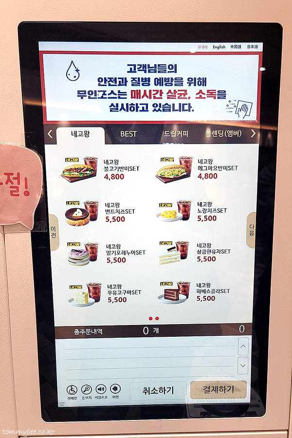 주문 대기는 굉장히 많았는데 키오스크 웨이팅은 없어서 운좋게(?) 바로 주문 성공.. 키오스크에서 네고왕 카테고리로 들어가 네고왕 세트 메뉴로 주문을 넣어야 할인이 됩니다.. 아메리카노 2천원은 잇츠앱에서 쿠폰 다운로드 후 주문이고요.. 아무 생각 없이 그냥 평소대로 주문하면 할인 미적용으로 정상가.. ㅡㅡㅋ..