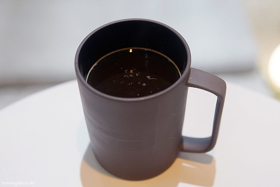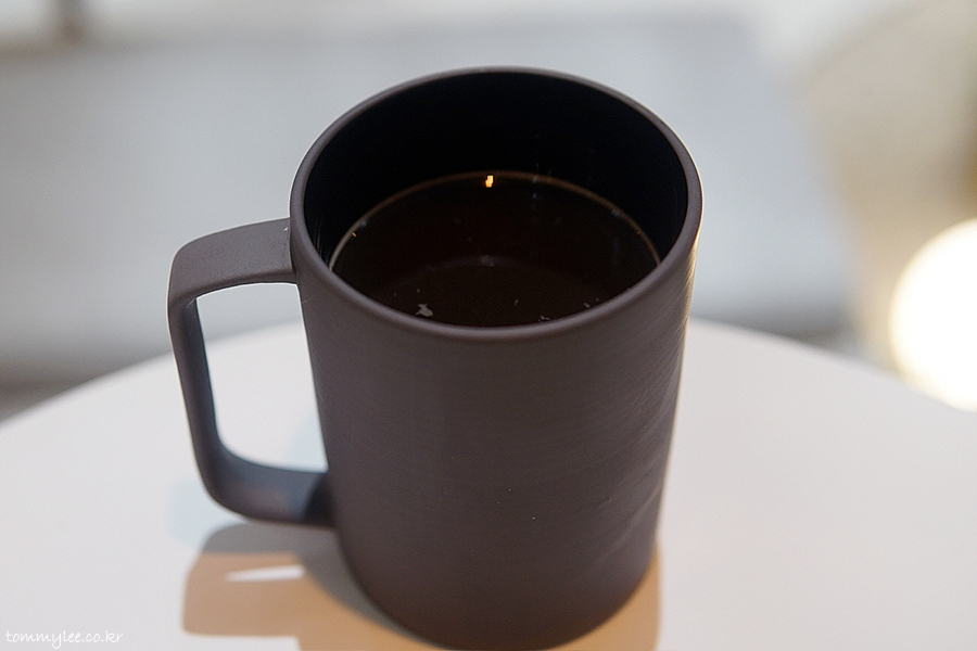 불고기 반미에는 차가운 앰버 아메리카노.. 인절미 케이크에는 뜨거운 시트론 아메리카노를 페어링 해봤습니다.. 같은 아메리카노지만 향부터 완전히 다름.. 깜장 머그라서 커피색이 잘 표현이 안되었는데요 보통의 커피보다 색이 밝아요.. 밀크 초콜릿 색 정도로 보시면 됩니다..