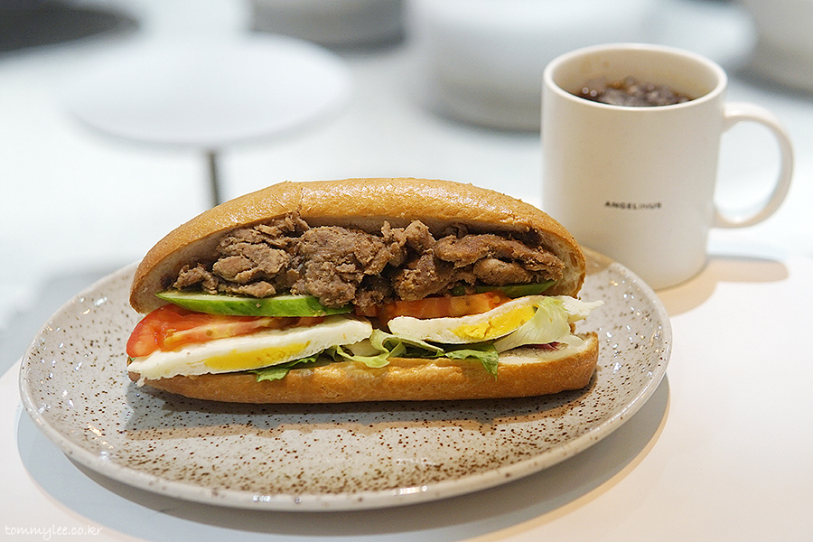 바삭한 바게트에 불고기와 계란 거기에 야채 듬뿍.. 진짜 워낙에 들어가는 게 많은 샌드위치다 보니 맛이 없을 수가 없습니다 사실..